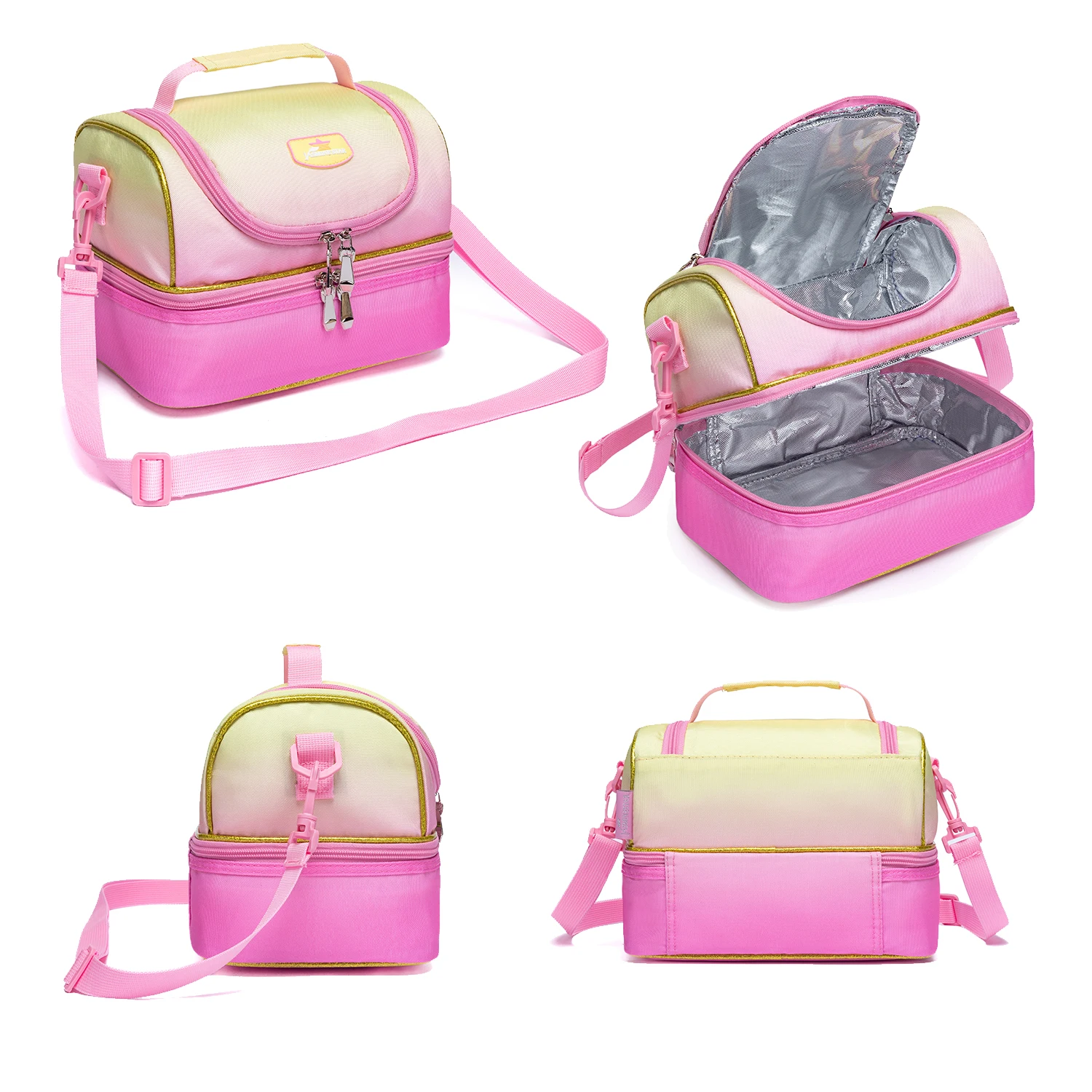 حقيبة غداء للبنات 5-12 صندوق بينتو للأطفال مع صندوق غداء مع عبوة ثلج مع زجاجة مياه من الفولاذ المقاوم للصدأ
